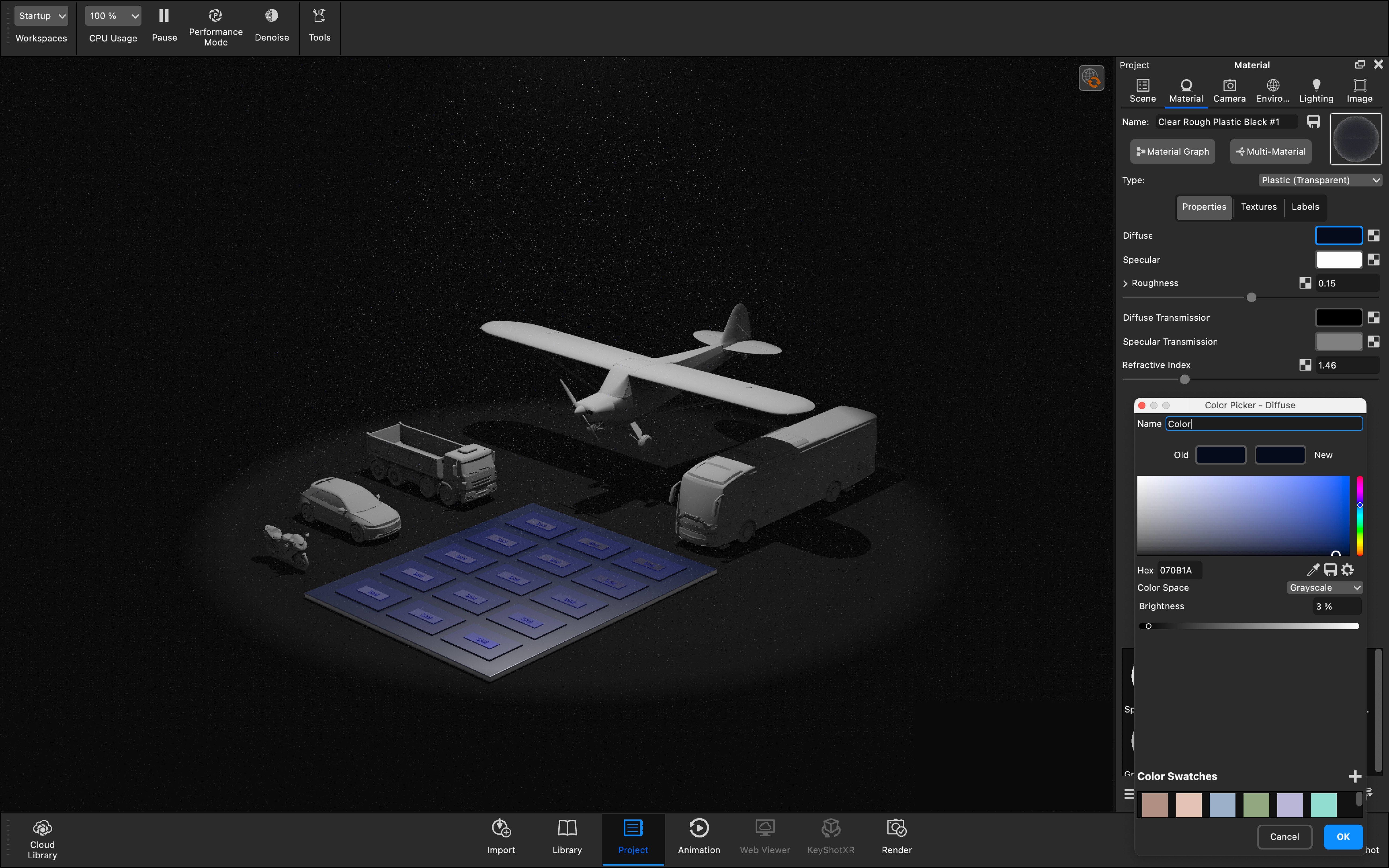 Then I rendered the image in KeyShot - spotlight, fog, smooth materials, and a vibrant blue for the powertrain. The result was a hero visual that made Scalvy’s product feel tangible, modern, and premium.