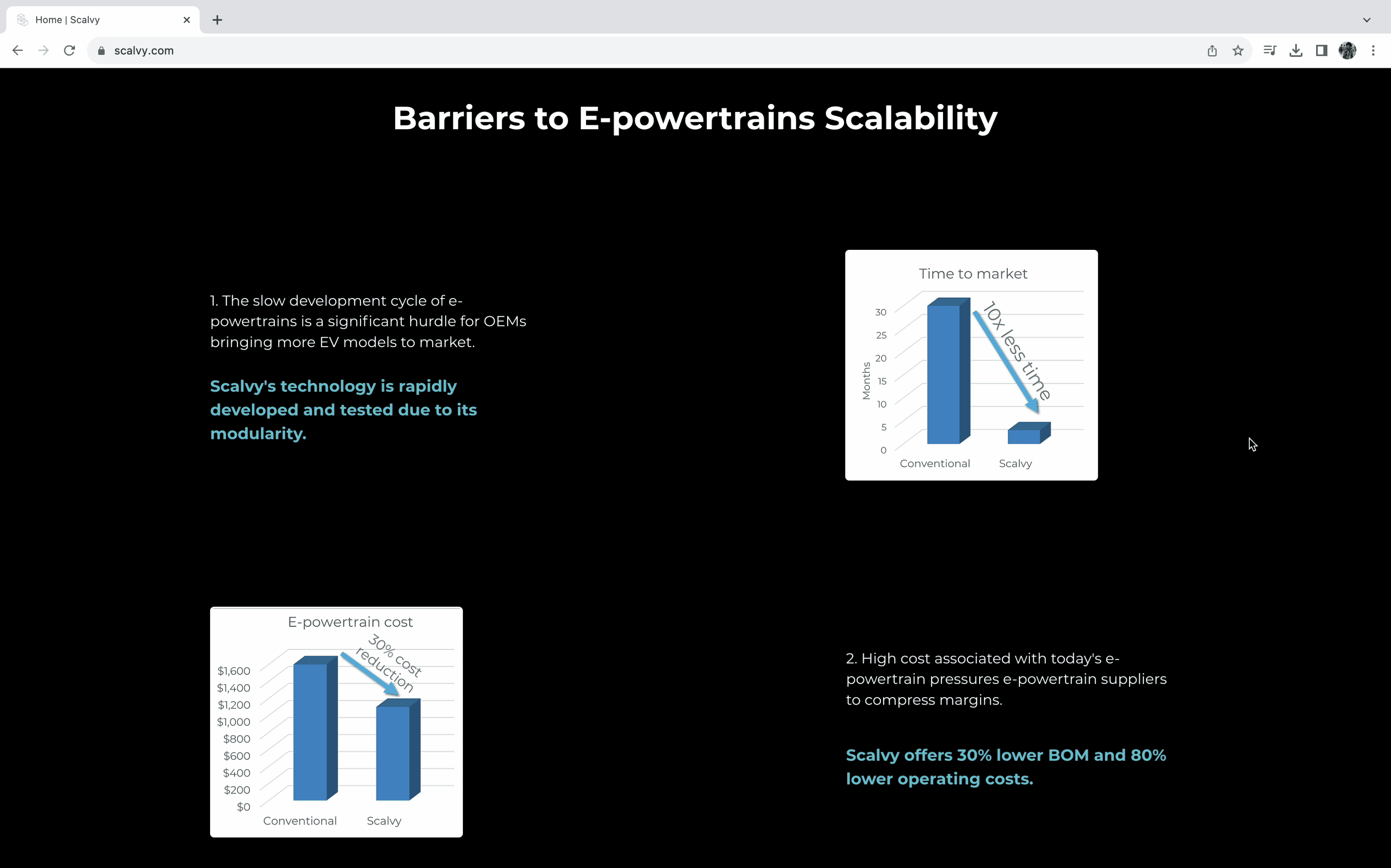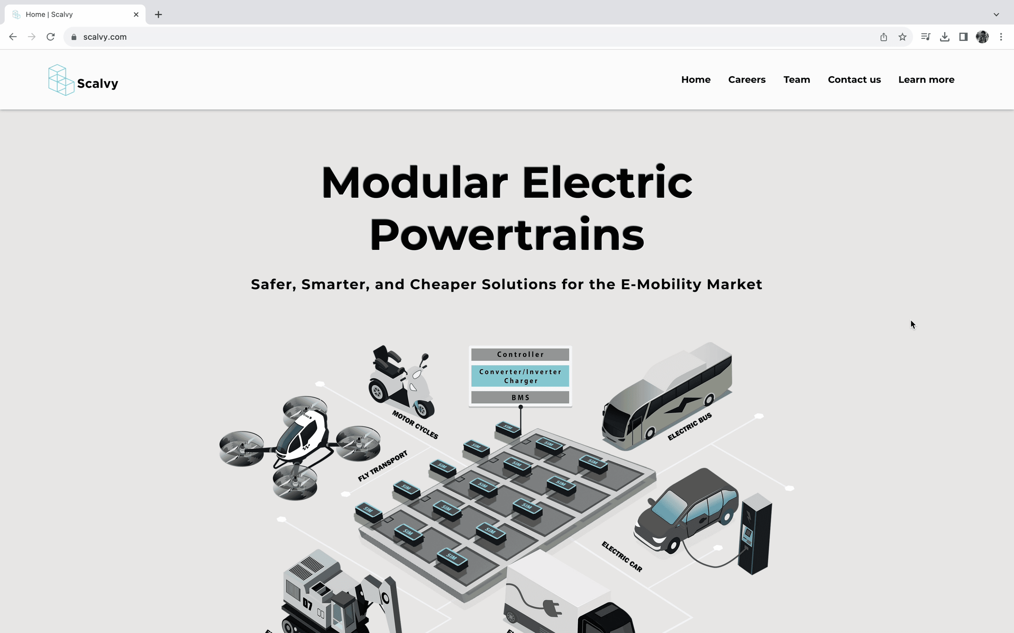 Scalvy is a modular EV powertrain provider with a powerful solution but had a website that looked outdated and read inconsistently with no clear narrative.